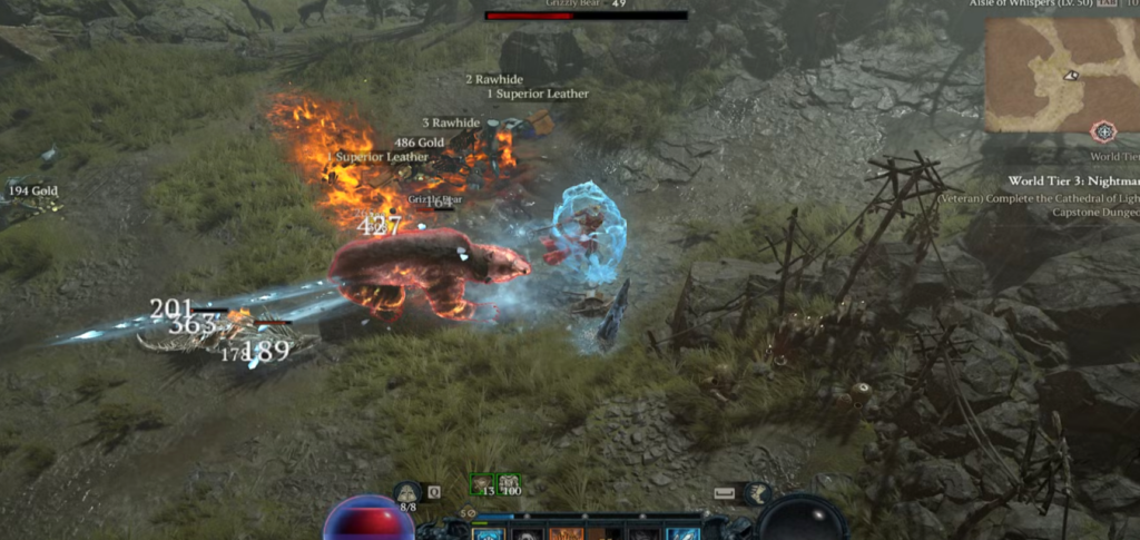 Blizzard poured a lot of love into spell effects and combat animation. When something freezes, you see directional icicles and rigid, brittle movement; when fire finishes a foe, the result can be a charred skeleton left behind. Physical strikes have the same attention, with larger attacks cleaving enemies apart in ways that feel satisfyingly brutal. The action is punchy and readable, and most skills feel like they have a purpose, even if a handful seem niche until the right build makes them shine.