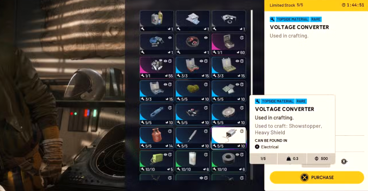 There are two primary ways to secure this rare electronic component. If you have the resources to spare, you can head to the Traders tab in the hub and speak with Celeste. She sells Voltage Converters for 10 Seeds each, with a daily stock of 5 units. However, if you’d rather save your Seeds for other upgrades, you’ll need to prepare for a Topside run into Electrical locations.