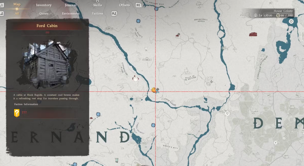 - Locate Ford Cabin: Travel to the Hook Rapids north of Hernand City.