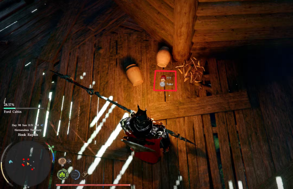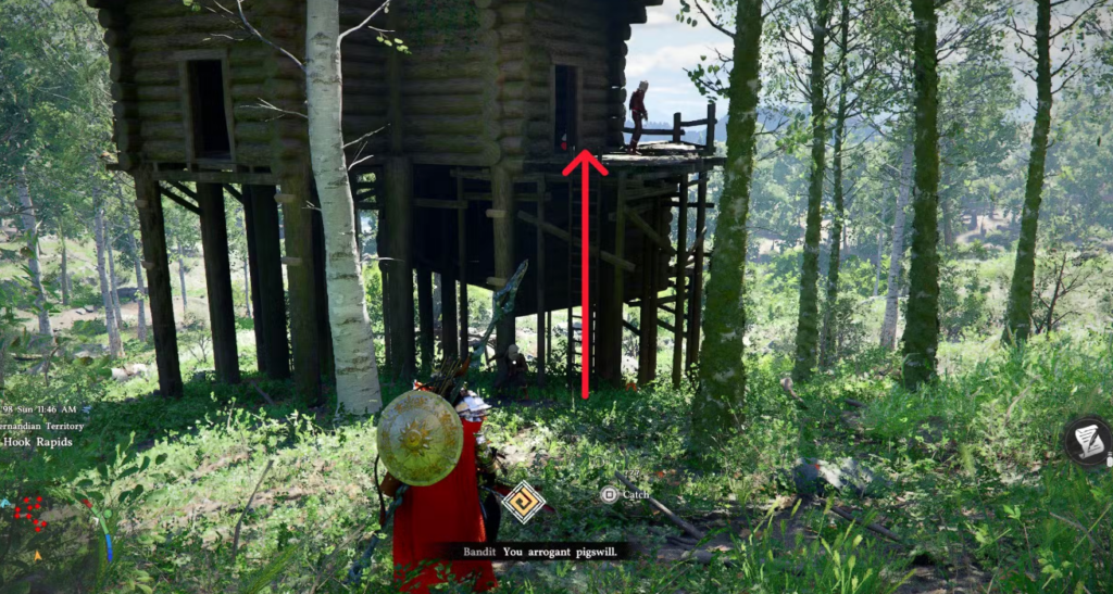 - Go Upstairs: Locate the ladder inside the cabin and climb to the upper floor.