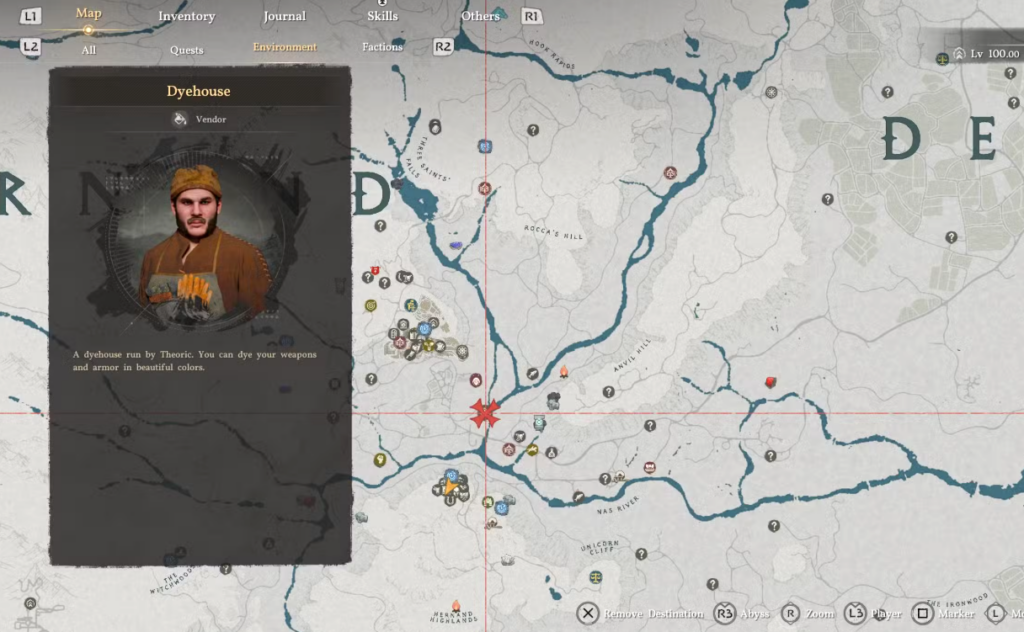 - Visit a Dyehouse: Head to a Dyehouse Merchant. A convenient one is located at the Hernand Farmhouse.