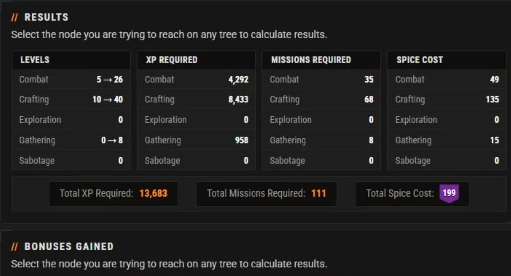 - Spice Melange (to buy major Trait nodes)