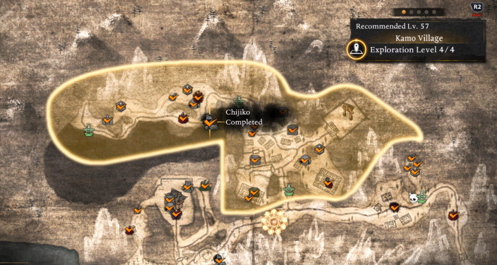 Your journey to find all Chijiko begins in Kamo Village, home to the first of nine. After fast traveling to Path of Koyama Shrine, head east. Your first objective is the Lesser Crucible, which you must find and destroy. This area isn’t very large, so the Lesser Crucible shouldn’t be hard to find if you stick to the eastern direction from the shrine.