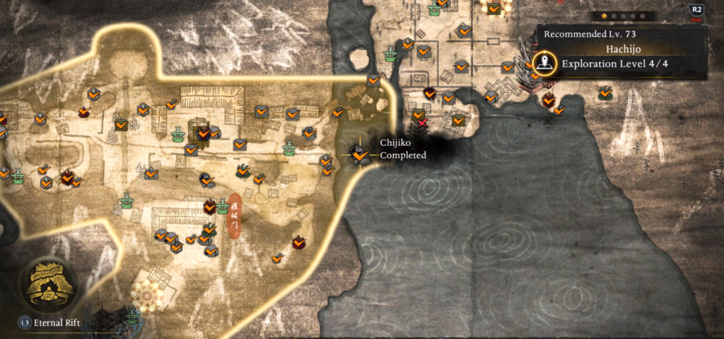 Raising the exploration level of each region is a critical step before beginning your search. The higher your exploration level, the more information appears on the map, including the precise positions of Chijiko. This will save you considerable time from wandering and guessing where exactly each yokai is located.