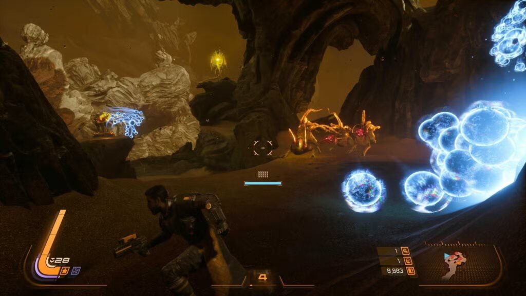 Systém permanentní progrese zajišťuje, že žádný průchod hrou není zbytečný. Za nasbíranou měnu si kupujete trvalá vylepšení zdraví, štítů a statistik, což z vás postupně dělá nezastavitelný stroj na zabíjení. Saros se sice může zdát kratší – k titulkům se lze dostat za necelých 10 hodin – ale díky nepovinným místnostem, skrytým cestám přístupným až s pozdějším vybavením a modifikátorům nabízí obrovskou znovuhratelnost.
