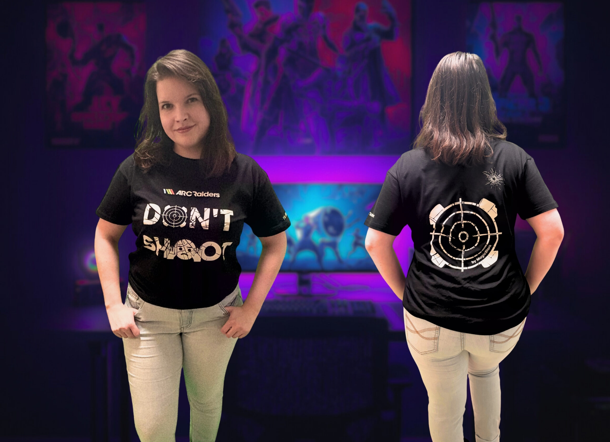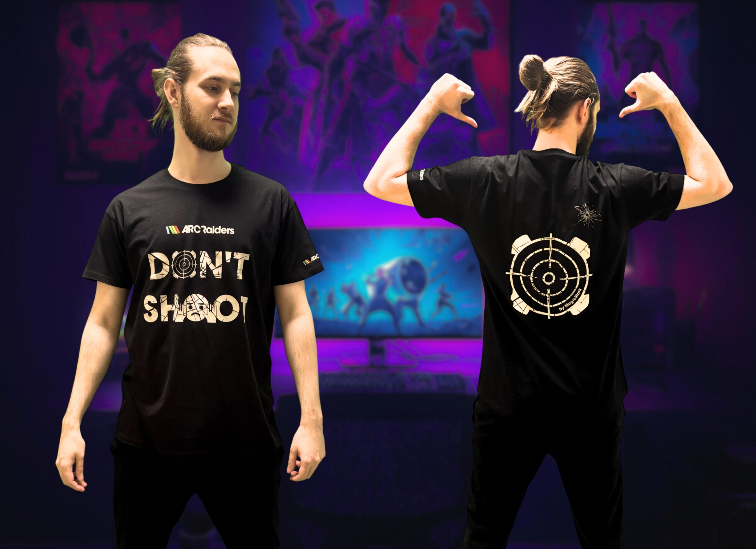 Černé UNISEX tričko z merch kolekce ARC Raiders s výrazným nápisem DON’T SHOOT na hrudi a velkým „target“ motivem na zádech. Design je od MagicStark a je oficiálně licencovaný studiem Embark. 80% bavlna, 20% polyester (120g/m2)