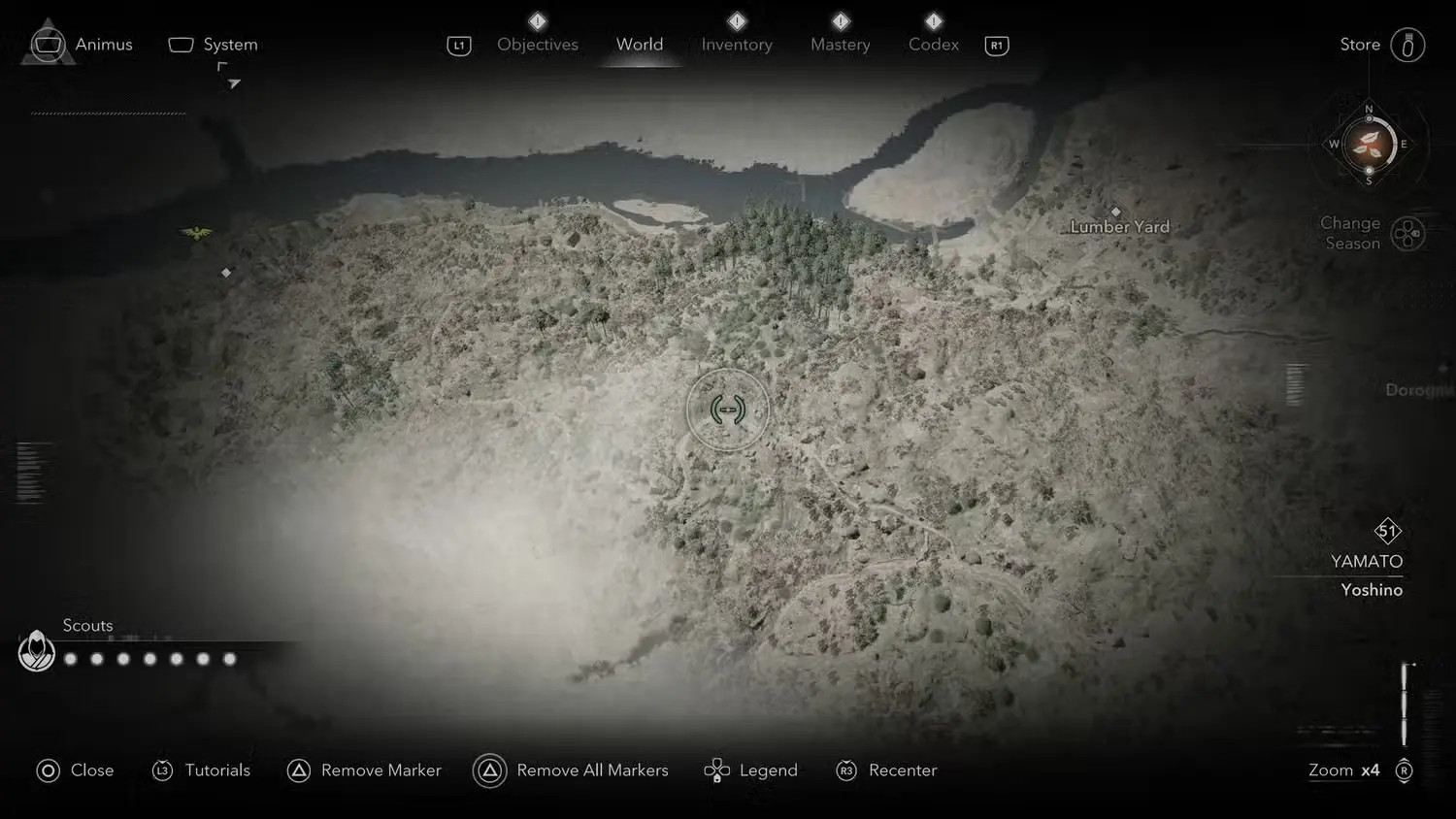 - Používej ptačí dron (tengu): Pro rychlé skenování oblasti a nalezení legendárních zvířat používej ptačího společníka.